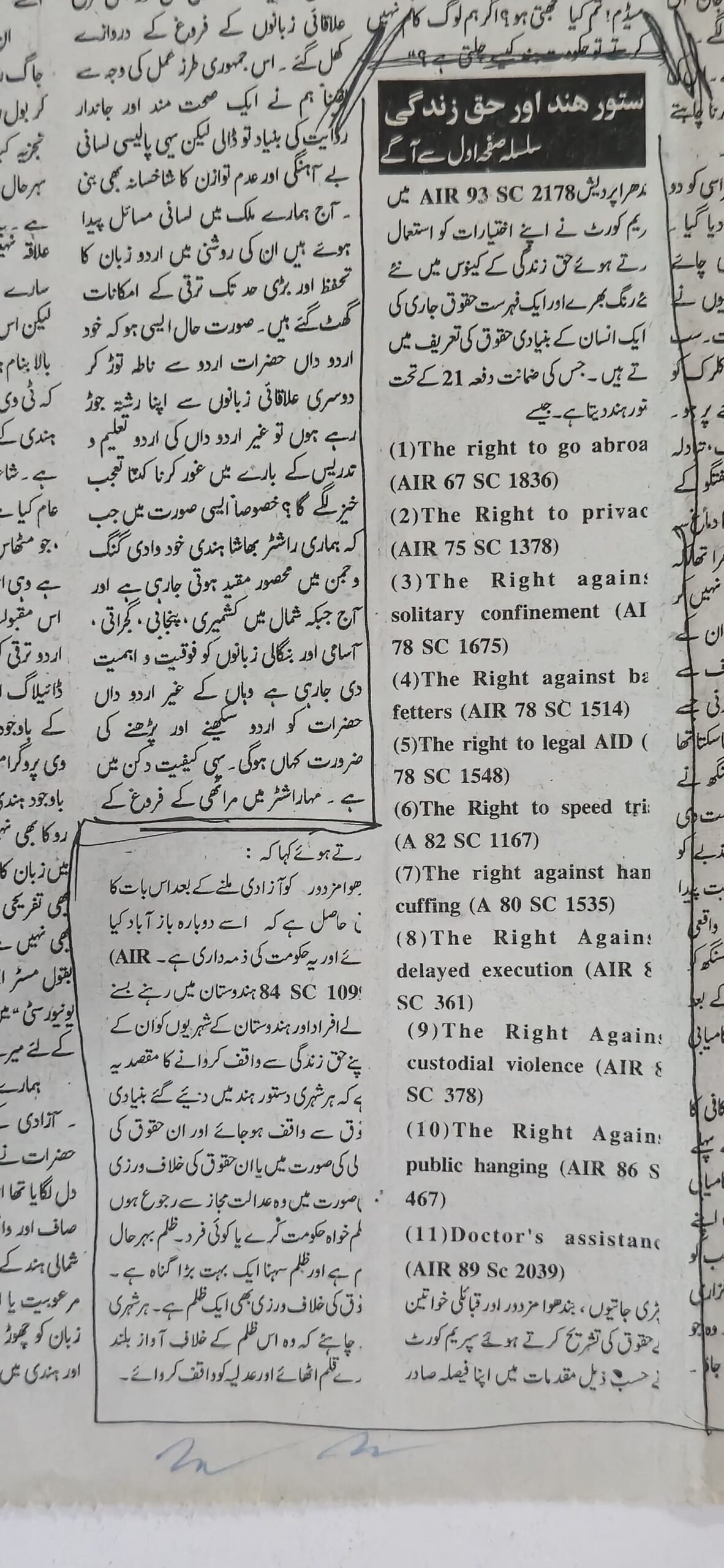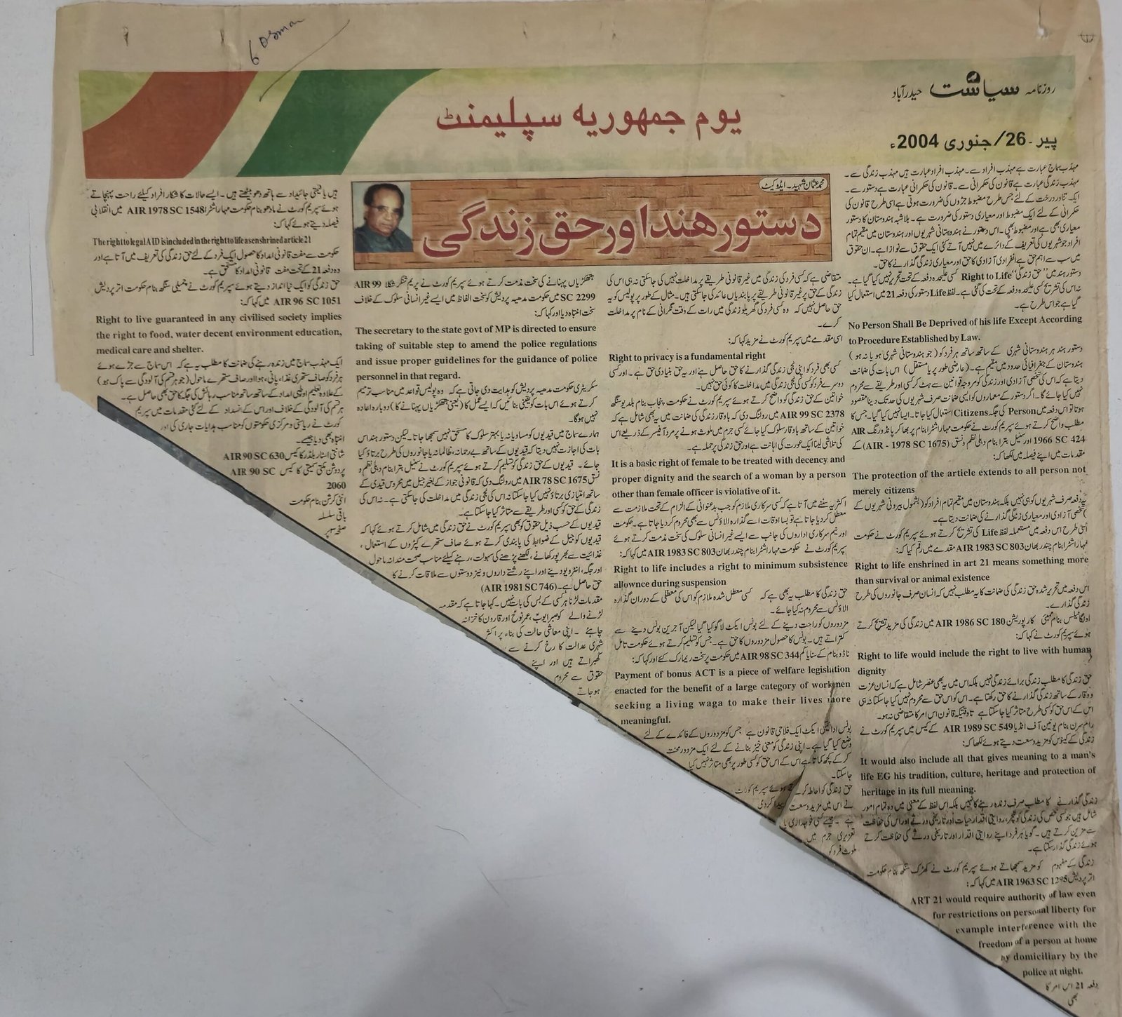 including Shamsheer-o-Sanan, Teer-o-Tufang, Sang-o-Khisht, and Qanooni Mashware (Legal Advice), covering legal, political, literary, and social themes.